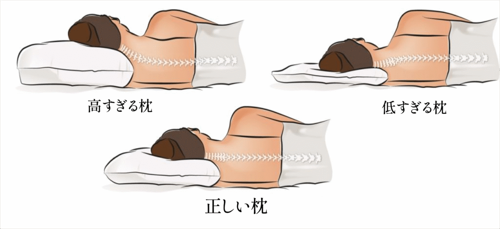 この状態では、一般的な枕では首がうまく支えられず、余計に負担がかかります。